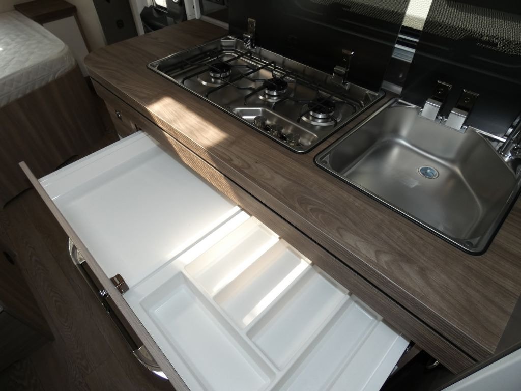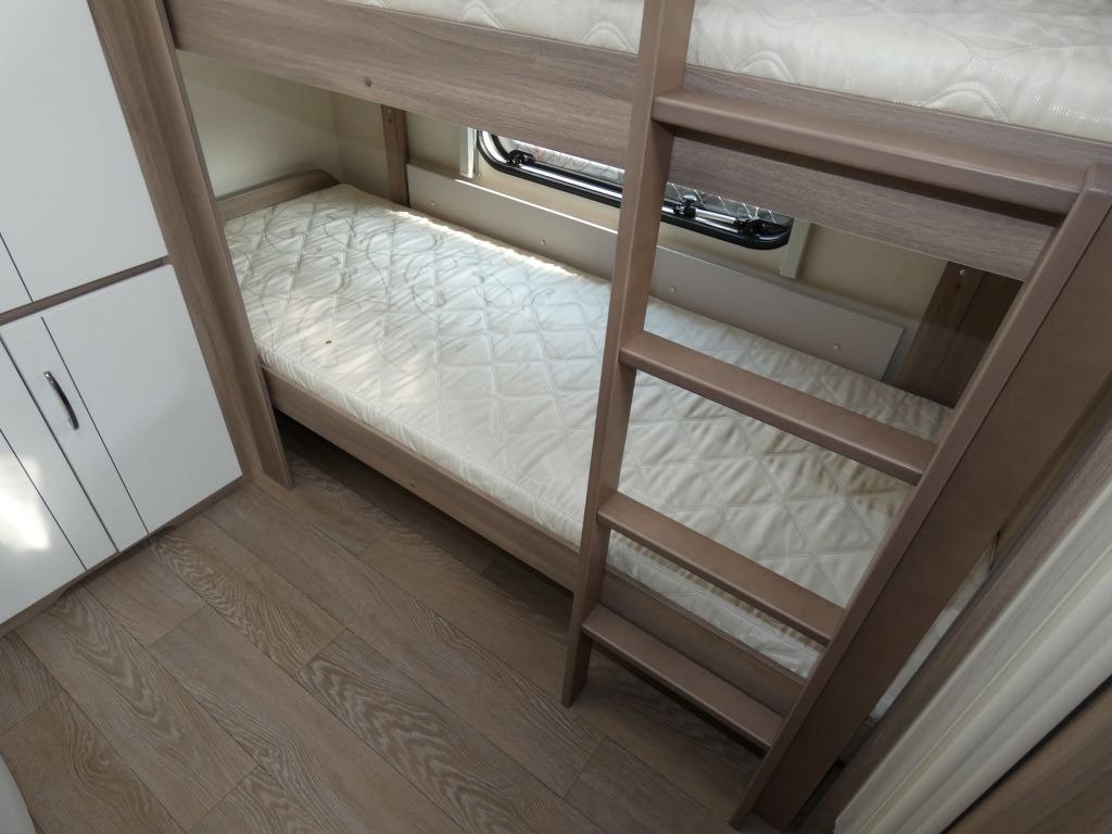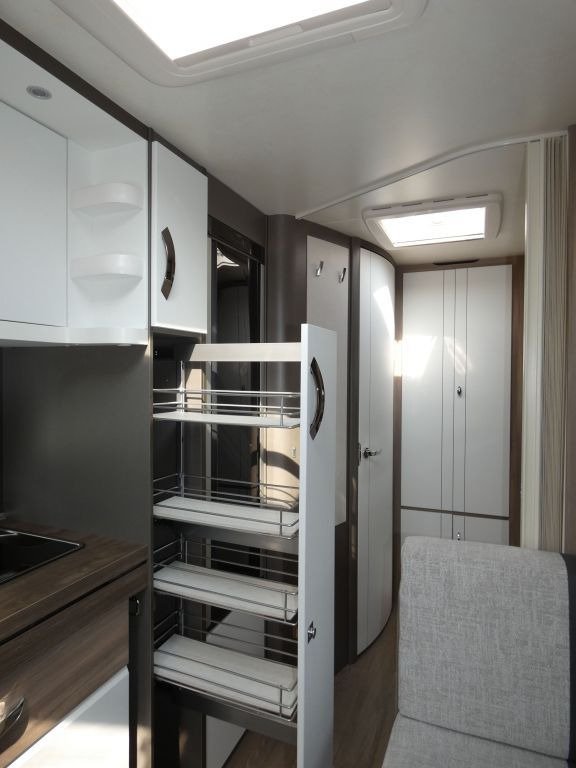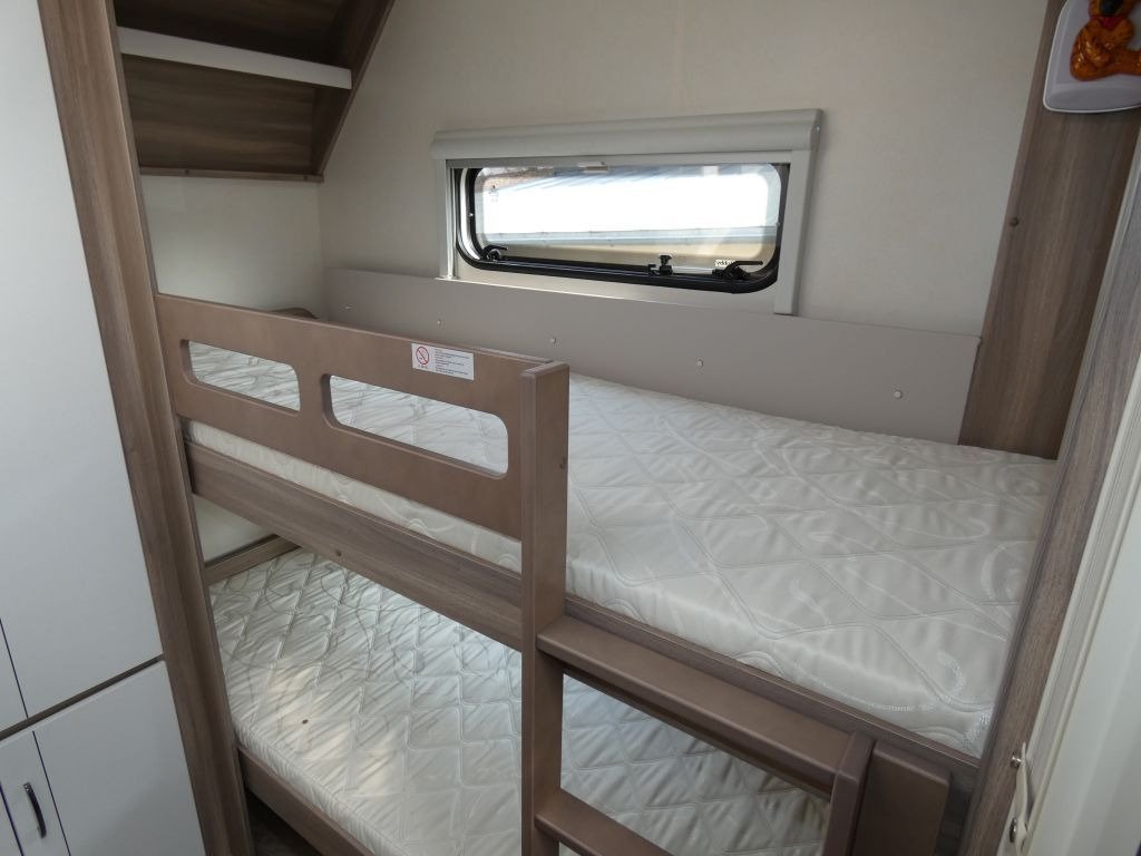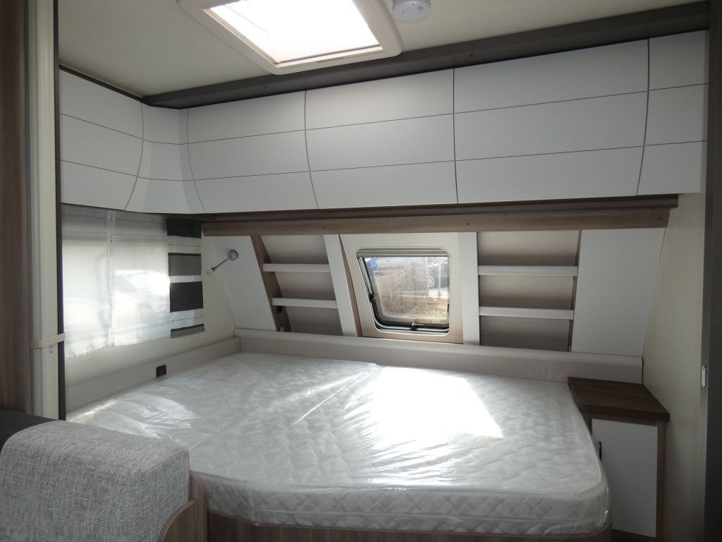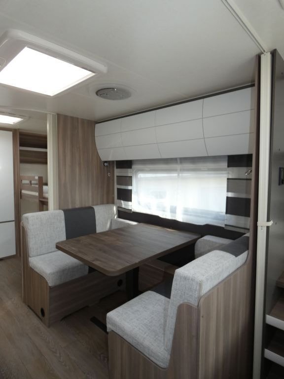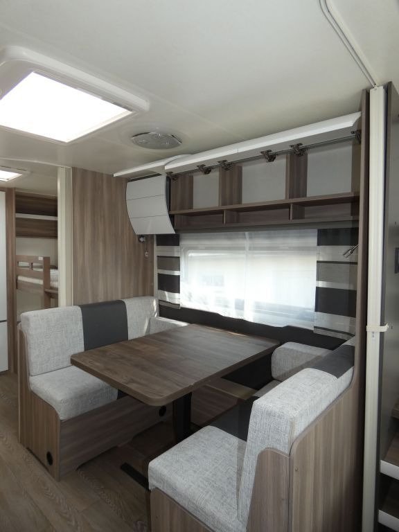 Cassettes combinées avec store occultant et moustiquaire, pour toutes les fenêtres (sauf salle de bain) ; indicateur de charge d’appui sur la roue avant ; homologation pour une vitesse de 100 km/h ; attelage antichute KNOTT ; coffre à bouteilles de gaz, adapté pour 2 bouteilles de 11 kg ; réfrigérateur DOMETIC, 133 litres, série 10, incl. Compartiment congélateur de 12 litres, avec double butée, technique d’absorption ; combinaison réchaud-évier en acier inoxydable avec réchaud à 3 feux, allumage électrique et couvercle en verre en deux parties ; lit d’enfant, à 2 étages avec protection contre les chutes et échelle ; cabinet de toilette avec douche séparée ; toilettes pivotantes THETFORD ; réservoir d’eaux usées, 23,5 litres, sur roulettes ; réservoir d’eau fraîche, 47 litres ; prise extérieure d’auvent, y compris sortie 230 V, raccordement SAT / TV et bien d’autres choses encore.